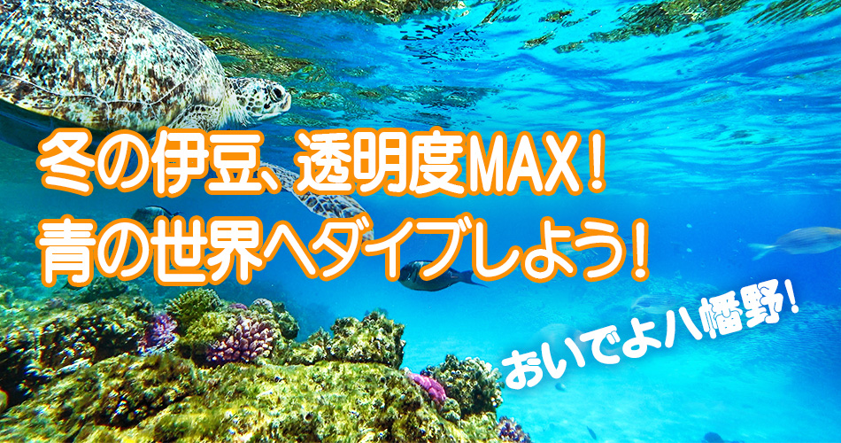 今のシーズン、伊豆は海の透明度が増して豊かな大自然を楽しむには最高の季節です!海も空いているし、多様な生物も豊富!そんな八幡野ではファンダイビングがおすすめです!